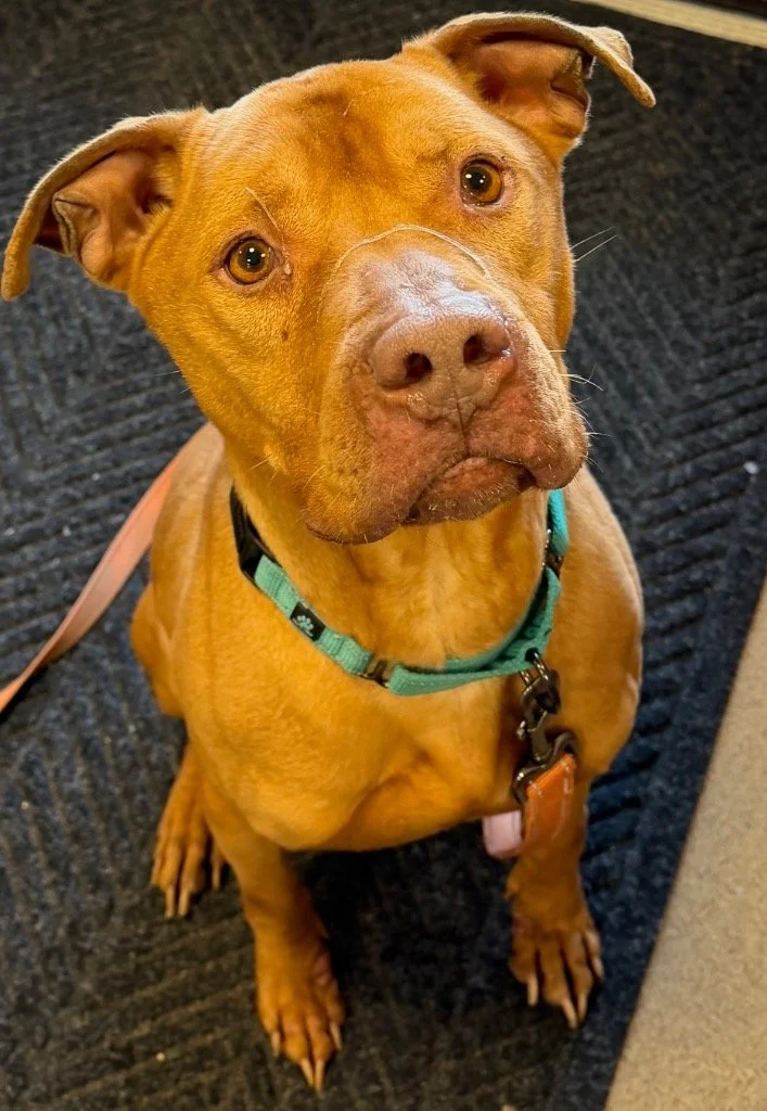 Chance may have had a rough start, but you would never know it by the love in his eyes. 💙 This sweet 8-year-old Pit mix is on the mend — gaining weight, healing beautifully, and soaking up every bit of kindness that comes his way.